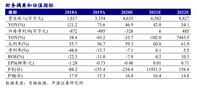 原文引用: "收入和增长率 这是Top line的两个核心指标。这是一大亮点:2019, 2020两个财年收入分别是$96.7M, $264.7M (174%的增长率!), 而2020年上半年的收入就达到了$242M, 也是三位数的YoY增长率。