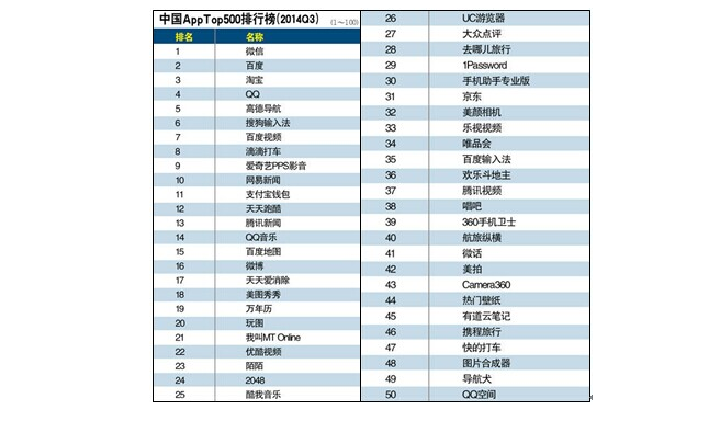 这个2014年中国手机APP装机排行榜,数据来源:互联网周刊