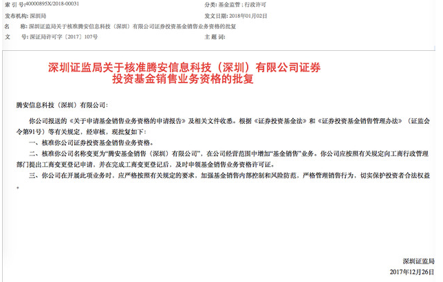 继旗下保险代理公司"微保"获批之后,腾讯控股(00700)再度拿下一块关键性的金融牌照——第三方基金销售牌照。