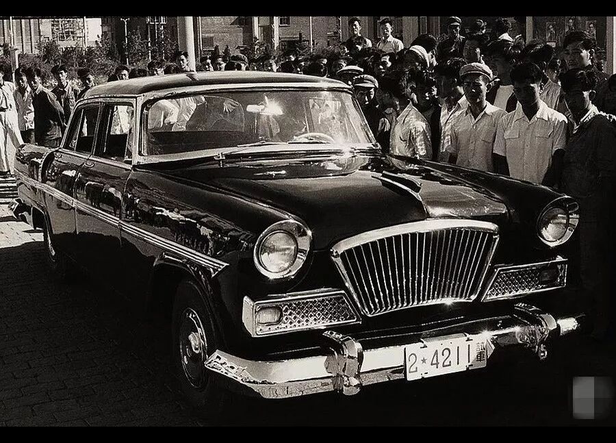 "乘东风,展红旗,造出高级轿车送给毛主席"的大跃进中,第一辆红旗车诞生了。