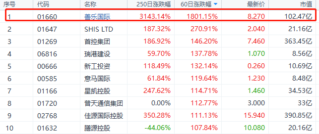 这样的涨幅,按照富途证券的数据,排在2500多只港股涨幅榜的NO.1,也遥遥领先我大A股的众多妖股,另外在全球主流股市、且流动性较佳的个股中,更是全球涨幅第一!