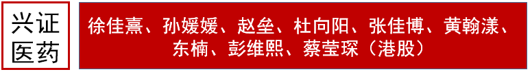 感谢您对兴业医药团队长期以来的关注,期待您的继续支持! 徐佳熹 兴业证券研究院院长助理,大健康与消费研究中心总经理,医药行业首席分析师