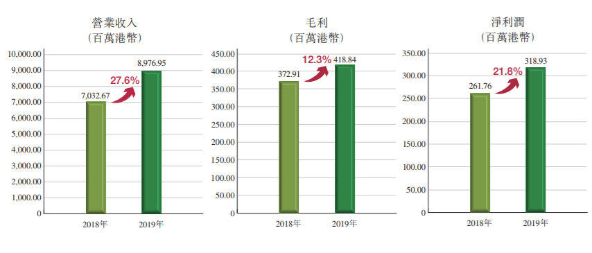 (摘自:中烟香港2019年报) 2019年度(「本年度」),本公司以市場為導向,努力擴大經營規模、持續優化業務 流程、不斷提高經營質量,各業務板塊均取得突破。全年實現營業收入8,976.95 百萬港元,同比增加1,944.