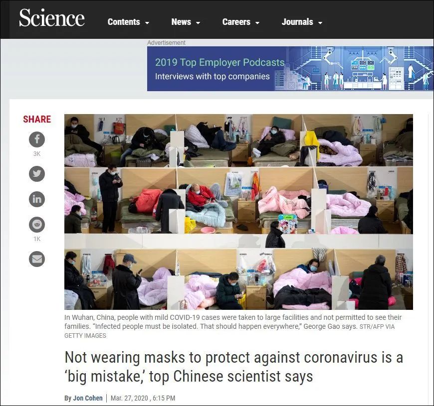 所属分类:转载 美国《科学》杂志当地时间3月27日刊登了其对中国疾控中心主任高福院士的采访。《科学》杂志(Science)是美国科学促进会出版的一份学术期刊,为全世界最权威的学术期刊之一。这篇采访历时数天,经过文字