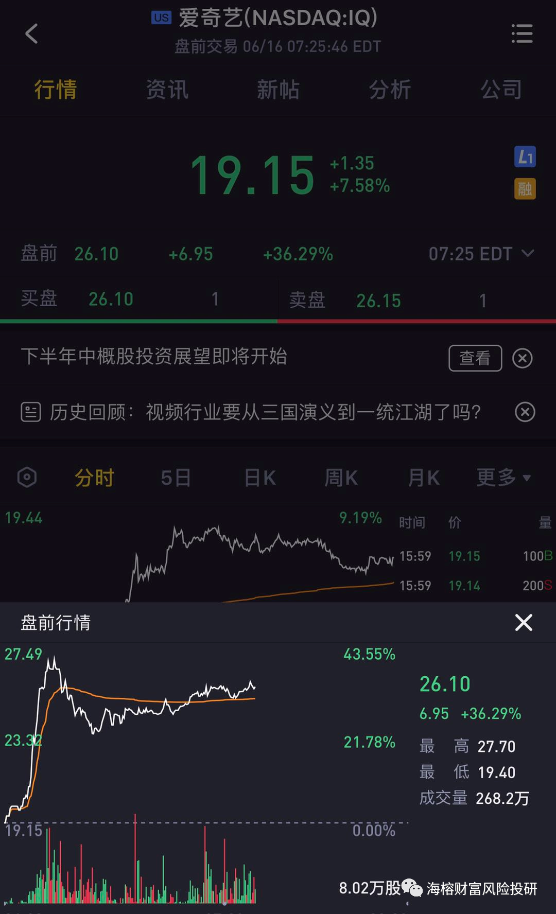 我这个公众号的定位主要是跟踪全球卓越投资者的变动,《海榕财富风险投研》是交易号不是财经号,交易号和财经的号最大的区别是: 交易号能最接近市场感受到市场的波动和逻辑的变化,交易号能感受到普通投资者的喜怒