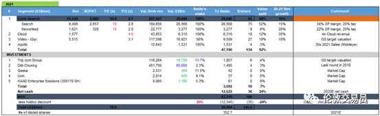 所属分类:转载 自上期的那篇腾讯剖析之后,今天,我借着高盛的估值模型给大家聊一聊百度。我们的关注点不是百度有没有被低估,而是给大家聊聊如何使用卖方投行的估值模型来看平台型企业。因为要不是作者俊二提起,