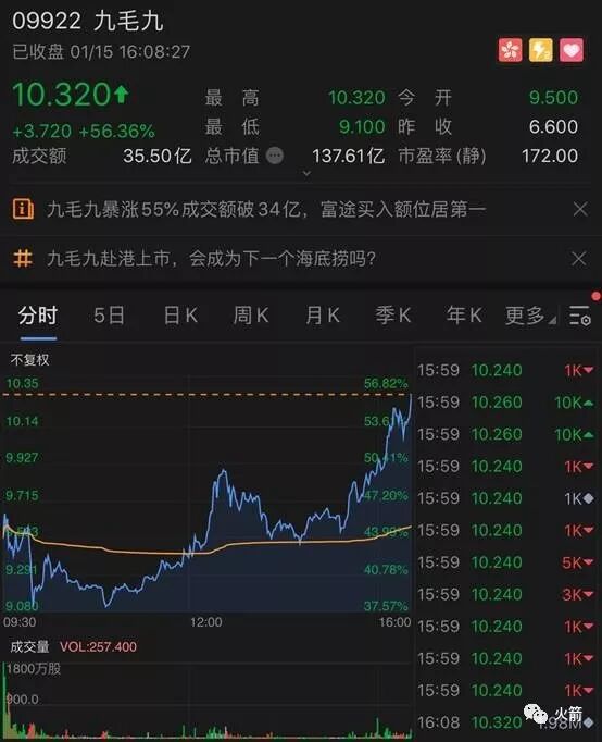 咱们反复介绍的九毛九在上市当天大涨50%+,不知道各位小伙伴们收益如何? 今天主要聊关于港股打新的机制问题,关于九毛九的投资逻辑今天就不再赘述了,参阅前文就好: